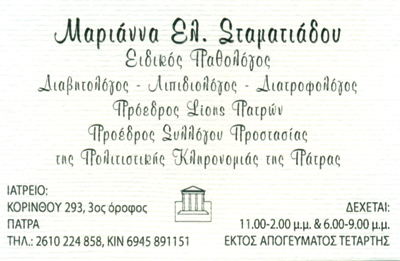 Σακχαρώδης Διαβήτης - Υπέρταση - ΠαχυσαρκίαΤροφική δυσανεξία - Εκτενής & προληπτικός έλεγχος οργανισμού.Ωράριο: Καθημερινά 11:00-13:00 & 18:00-21:00 εκτός Τετάρτης.